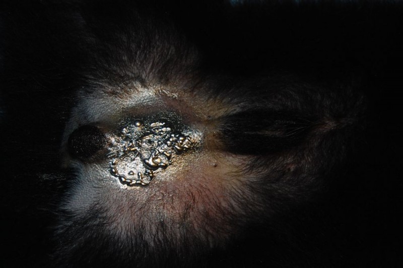 Una vez terminada la castración, se cierra la incisión con seda y se rocía con spray de plata cicatrizante.